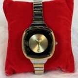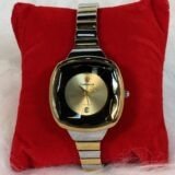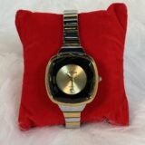 This wristwatch features a meticulously crafted silver and golden tiny chain strap, designed for comfort and durability. The golden circle screen is perfectly complemented by the golden and silver sides, creating a harmonious and refined appearance. The golden rotation hands bring added finesse, allowing for effortless time-reading while exuding a luxurious charm.