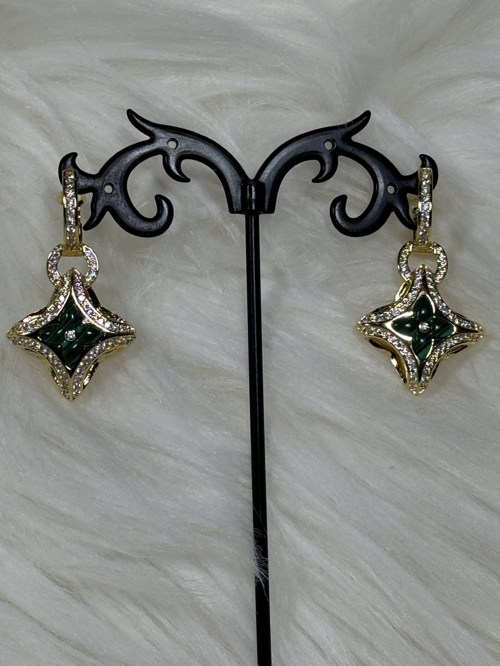 Introducing the stunning Louis Vuitton dropping earrings, exquisitely designed to elevate your sense of style. Featuring a radiant green star pendant beautifully accented with golden linings, these earrings are a perfect blend of sophistication and charm. Whether you’re heading to a formal event or adding a touch of chic luxury to your daily attire, this accessory complements any look with grace and elegance.