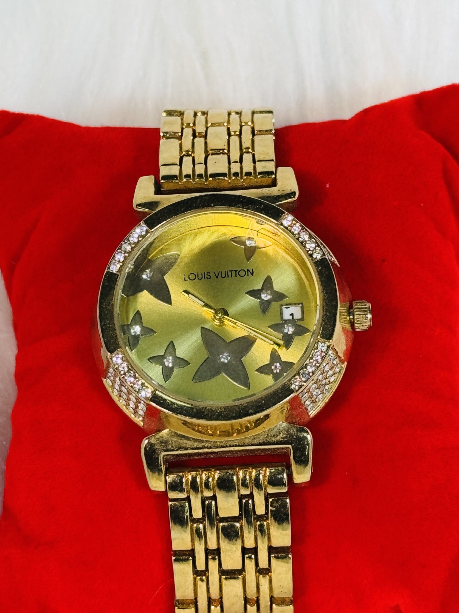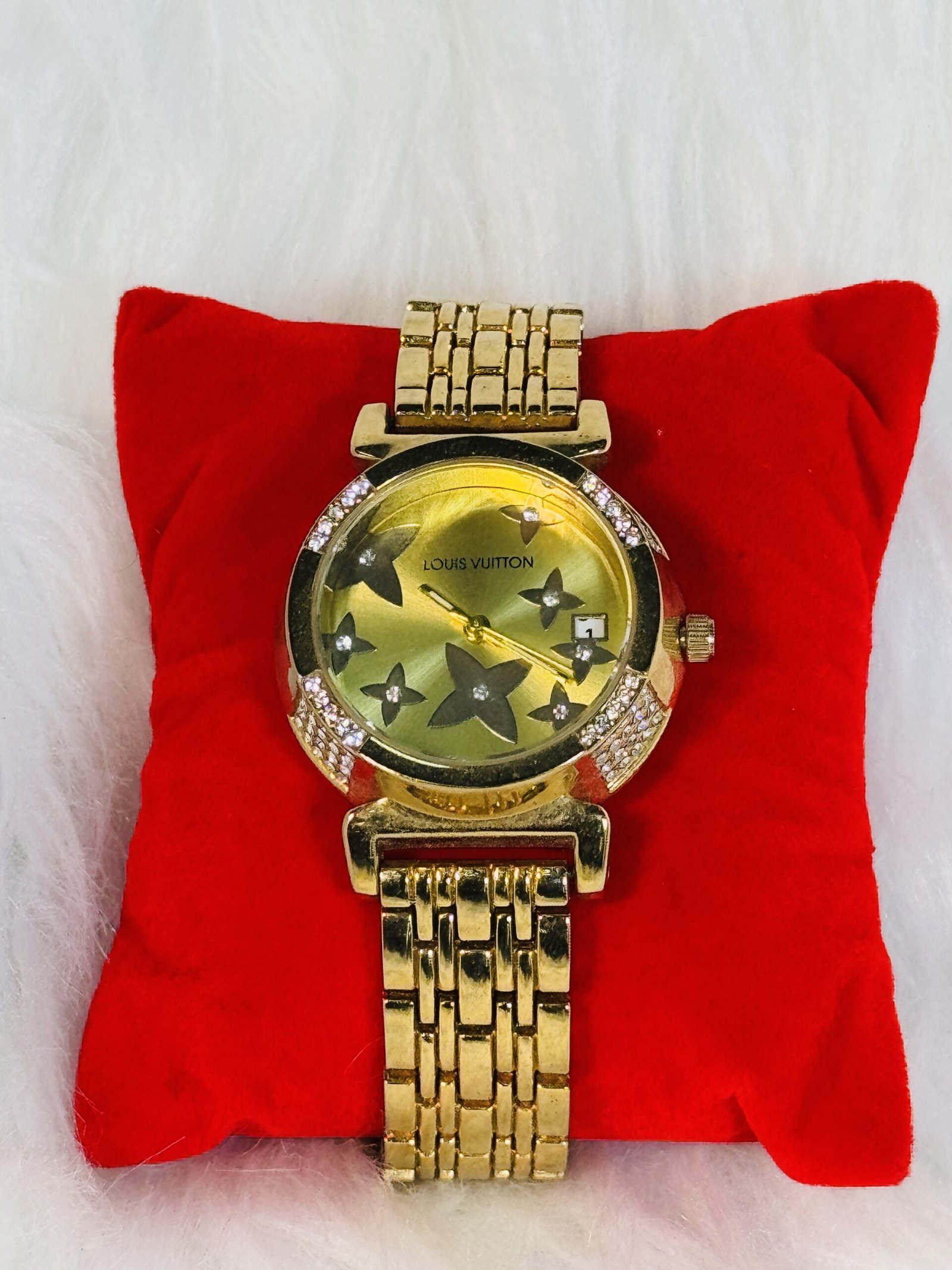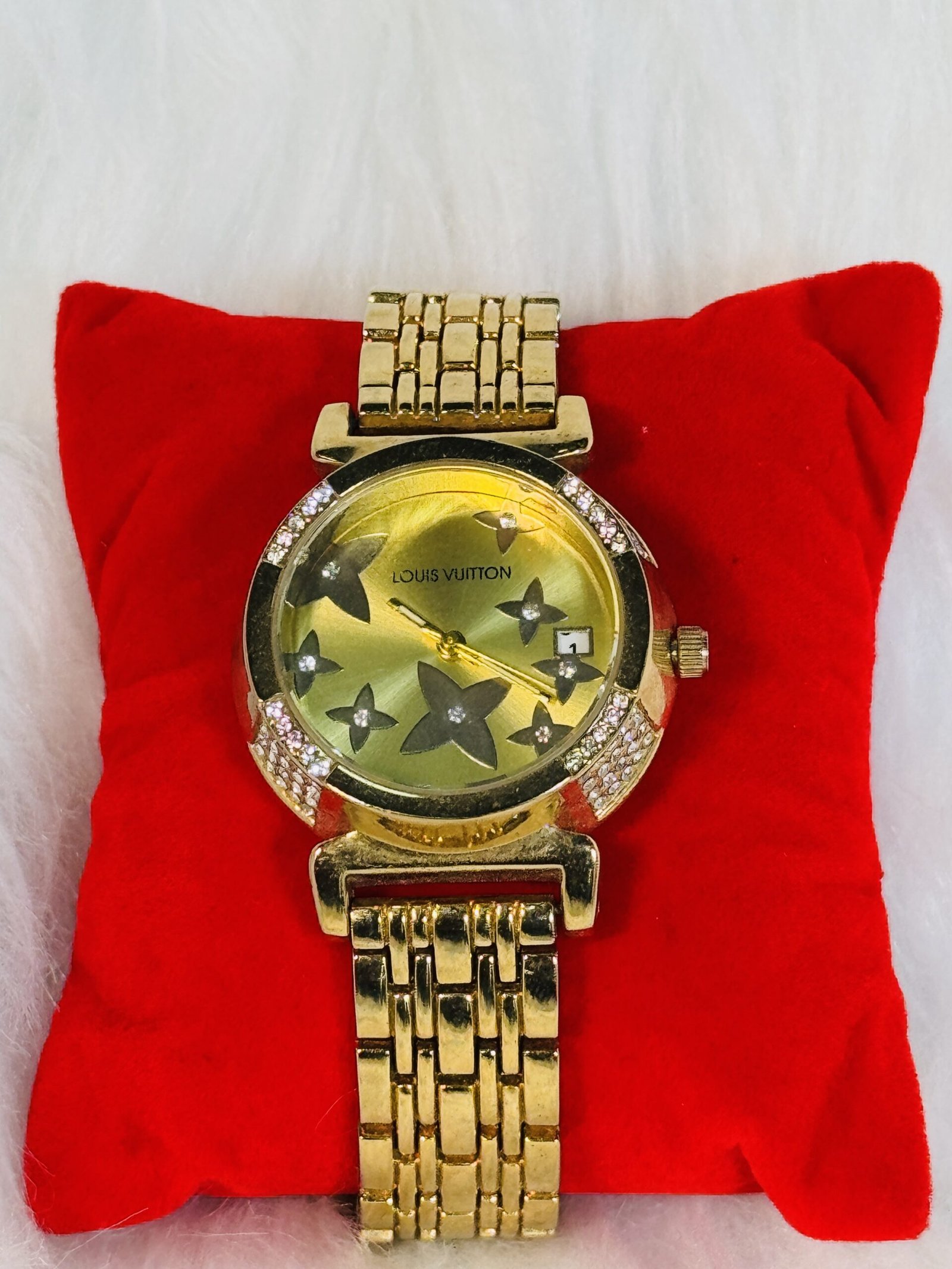 Whether you’re dressing for a professional meeting, a formal event, or a casual gathering, the Louis Vuitton Golden Wristwatch adapts seamlessly to your wardrobe, enhancing your personal style effortlessly. Add this emblem of luxury to your collection today and showcase your affinity for timeless elegance.