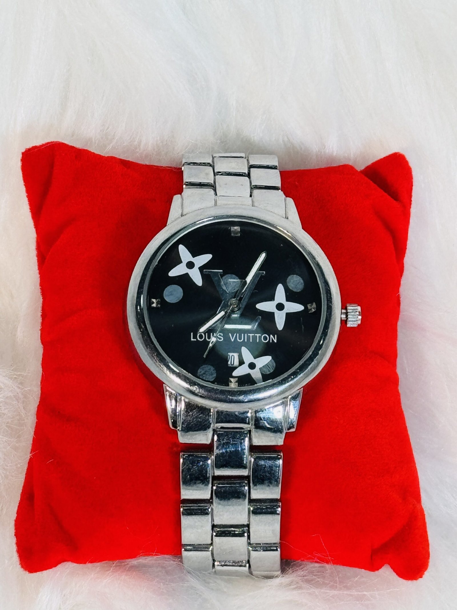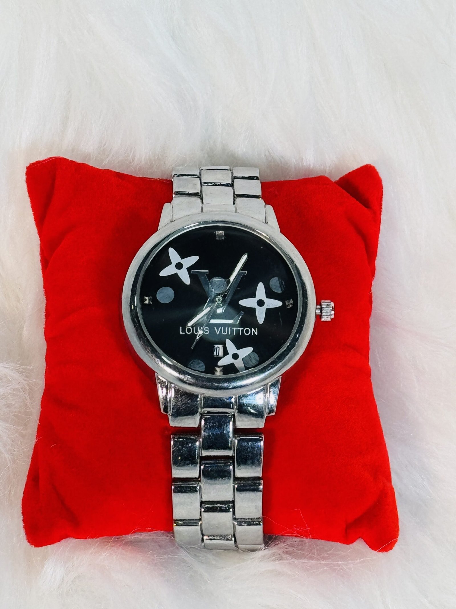 Whether you’re heading to an exclusive event or looking to elevate your everyday ensemble, the Louis Vuitton wristwatch with a layered silver chain strap is the perfect choice. Own a piece of timeless luxury that reflects your sophistication and makes a bold impression wherever you go.