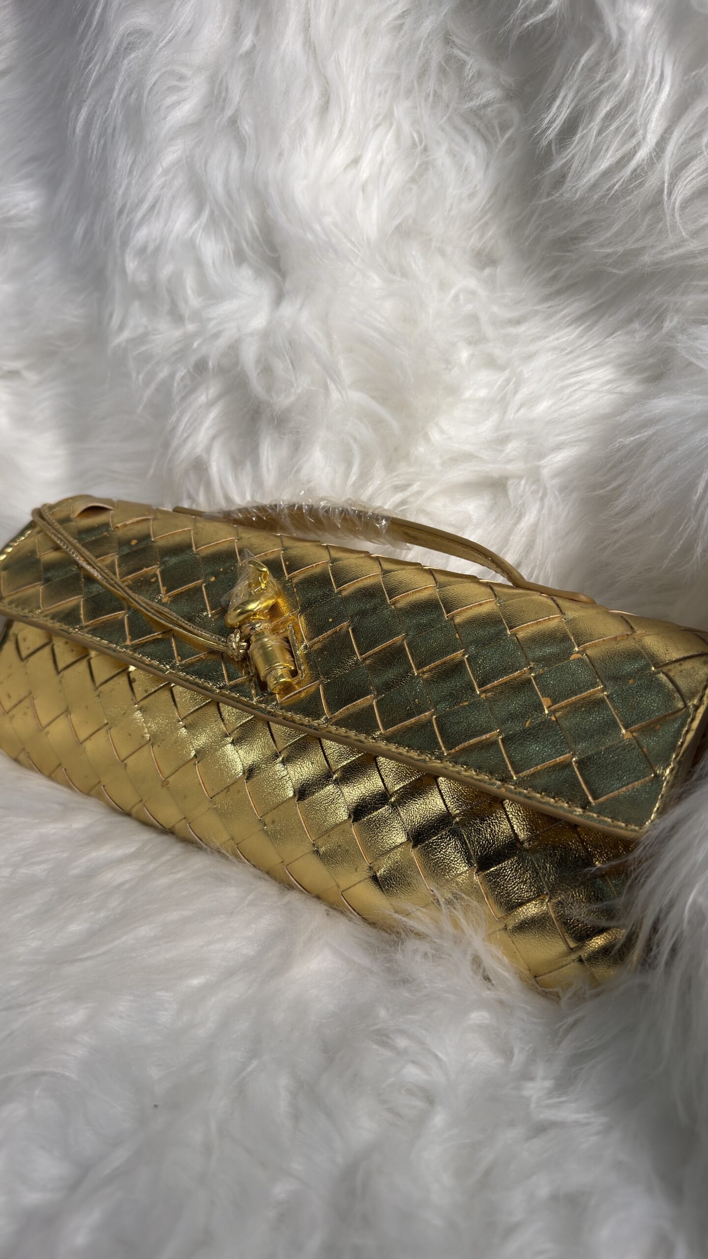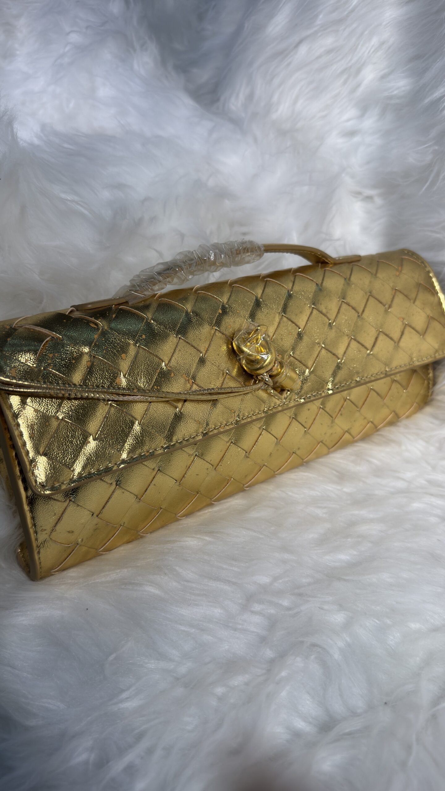 Made from 100% genuine leather, the Bottega Veneta gold bag boasts a stunning metallic gold finish that effortlessly complements any ensemble. The meticulous attention to detail—from the finely stitched edges to the subtly embossed logo—sets this designer bag apart. Its spacious interior provides ample room for essentials, while the compact design ensures ease of portability. Ideal for fashion enthusiasts seeking both aesthetic appeal and durable performance.
