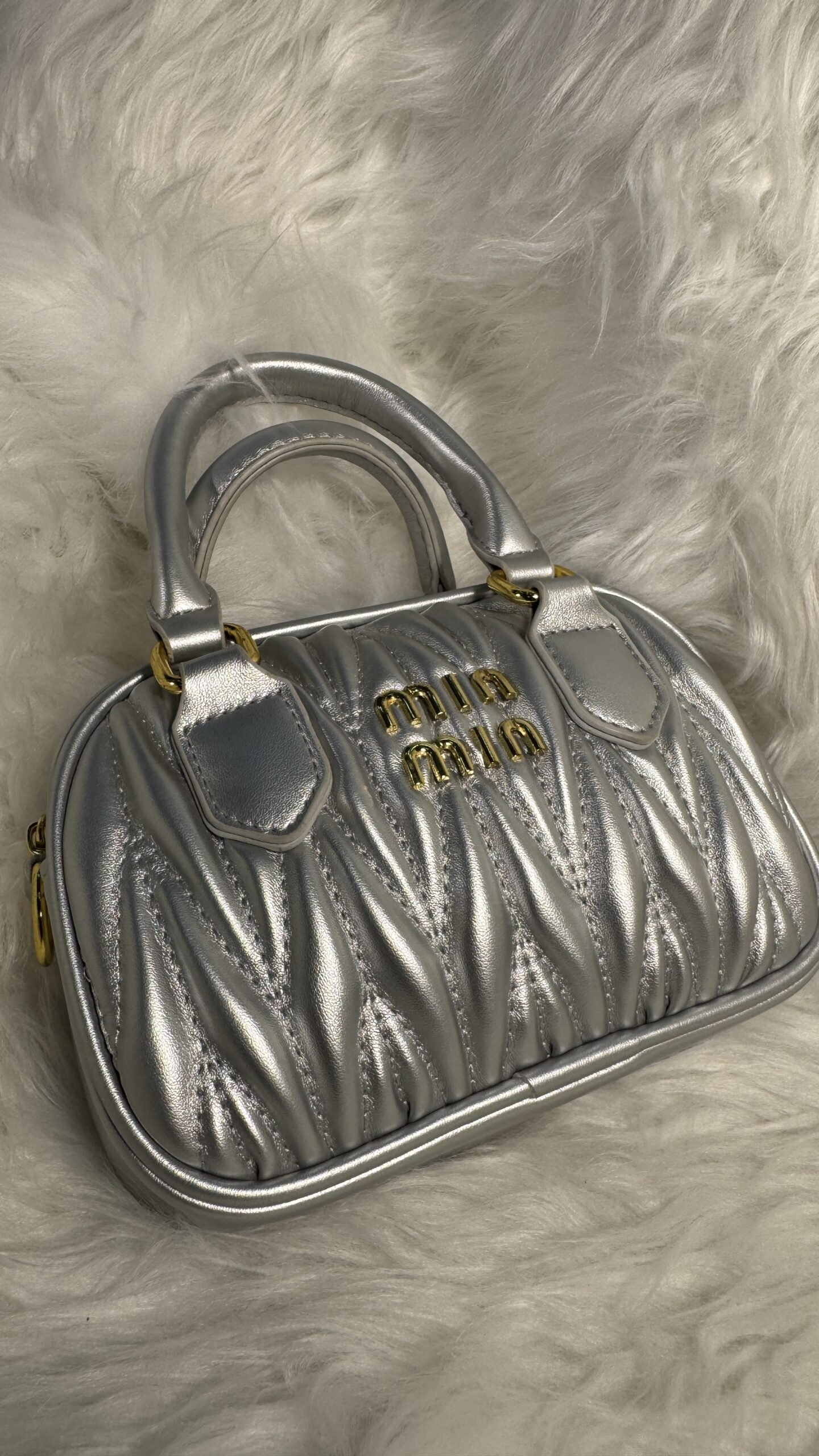 Embody elegance and sophistication with the Luxury Miumiu Leather Silver Hand Purse, designed to be the perfect addition to your wardrobe. Crafted with precision from top-grade leather, this accessory exudes unmatched quality and timeless appeal. Its sleek silver accents and minimalist design make it a versatile companion, seamlessly transitioning from casual outings to formal affairs.
