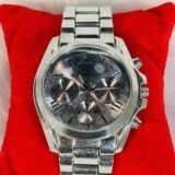 The patterned blue dreamy silver screen is the centerpiece of this wristwatch. Exquisitely designed, the dial complements the sleek silver tones of the strap and sides, adding a subtle yet distinctive charm. Its three silver inscribed small clocks enhance functionality, offering added versatility with options for date tracking or secondary time zones. The harmonious integration of design and practicality ensures that this watch is not only a fashion statement but also a reliable companion for daily wear.