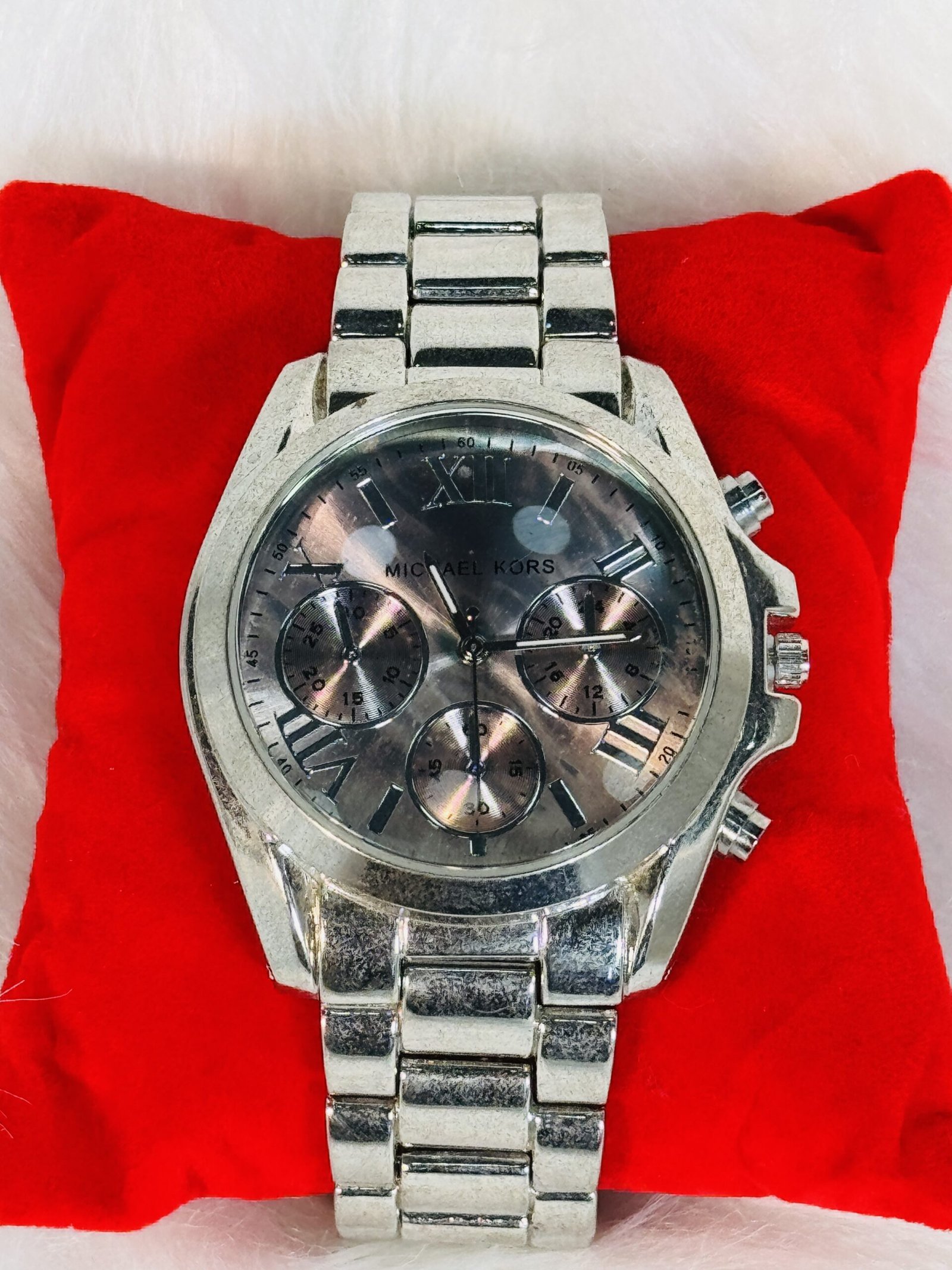 Discover unparalleled sophistication with the Michael Kors wristwatch, a blend of luxury and contemporary design that redefines timekeeping. Featuring a big silver chain strap, this watch offers durability, comfort, and a striking aesthetic. Whether you’re attending a formal event, heading to the office, or simply looking to enhance your everyday ensemble, this elegant timepiece makes a lasting impression.