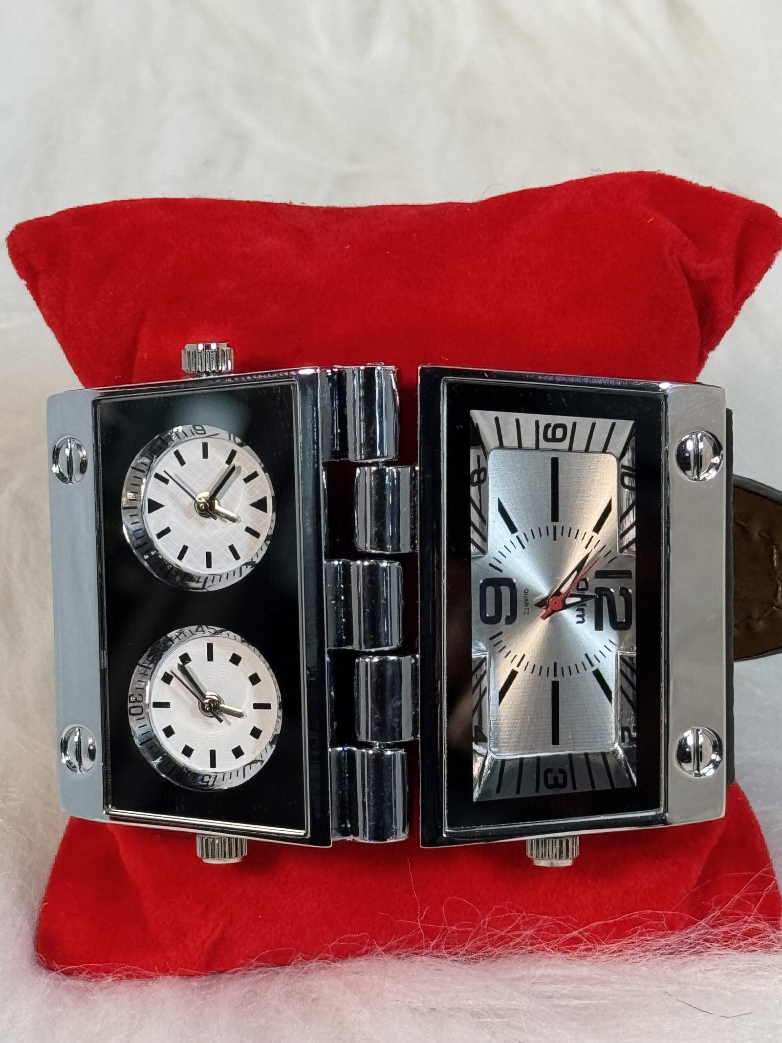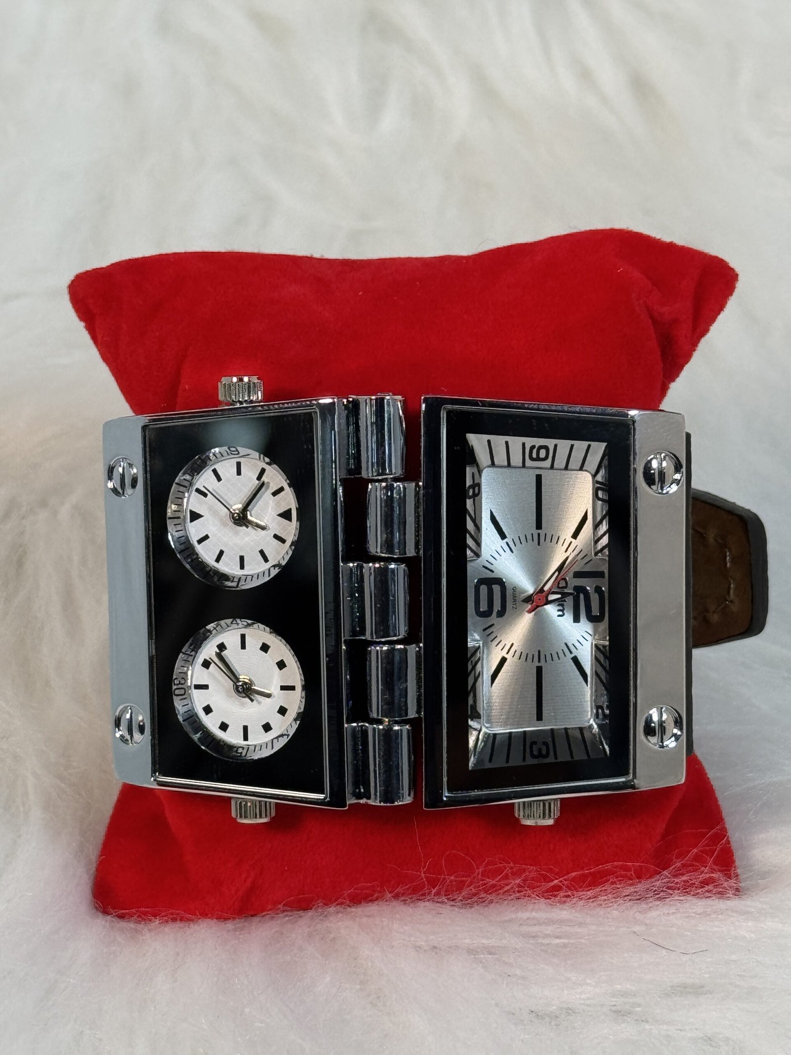 The heavy silver double-sided screen adds an unmatched level of distinction. Its robust design, paired with silver engravings, carries a bold aesthetic that attracts attention without compromising functionality. The intricate engravings enhance the watch’s character, making it a standout item for collectors and everyday enthusiasts alike.