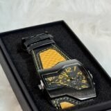 The grey screen brings sophistication to the wristwatch while golden inscriptions create a harmonious balance between functionality and refined aesthetics. Every element of the watch’s design, from the dial to the strap, has been thoughtfully curated to speak to contemporary trends while maintaining a classic appeal. The smooth leather strap promises comfort throughout the day without compromising on the bold, engraved style that sets this piece apart.
