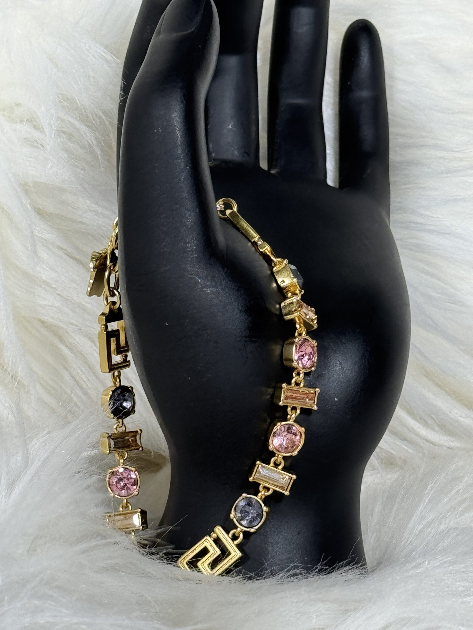 Looking for the ideal gift? Whether it’s for a loved one or a personal indulgence, this bracelet is sure to impress. Its universal appeal allows it to be paired effortlessly with other jewelry or worn as a stand-alone statement piece. The Pink and Blue Stone Versace Bracelet is not just an accessory – it’s a symbol of luxury, elegance, and refined taste that will remain cherished for years to come.