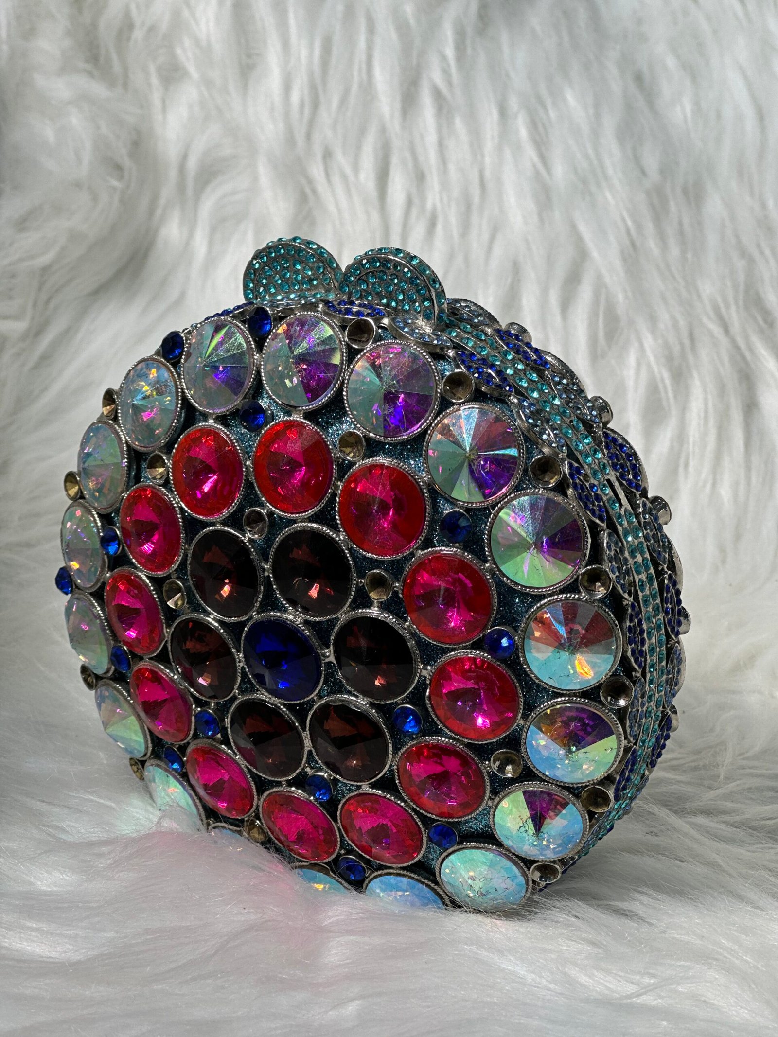 With its compact yet spacious design, the pink and blue stone-styled clutch purse is as practical as it is stylish. It offers enough room for your essentials, such as your phone, keys, lipstick, and wallet, conveniently organized within its sleek structure. Its snap closure keeps your belongings secure, so you can focus on enjoying your outings worry-free.
