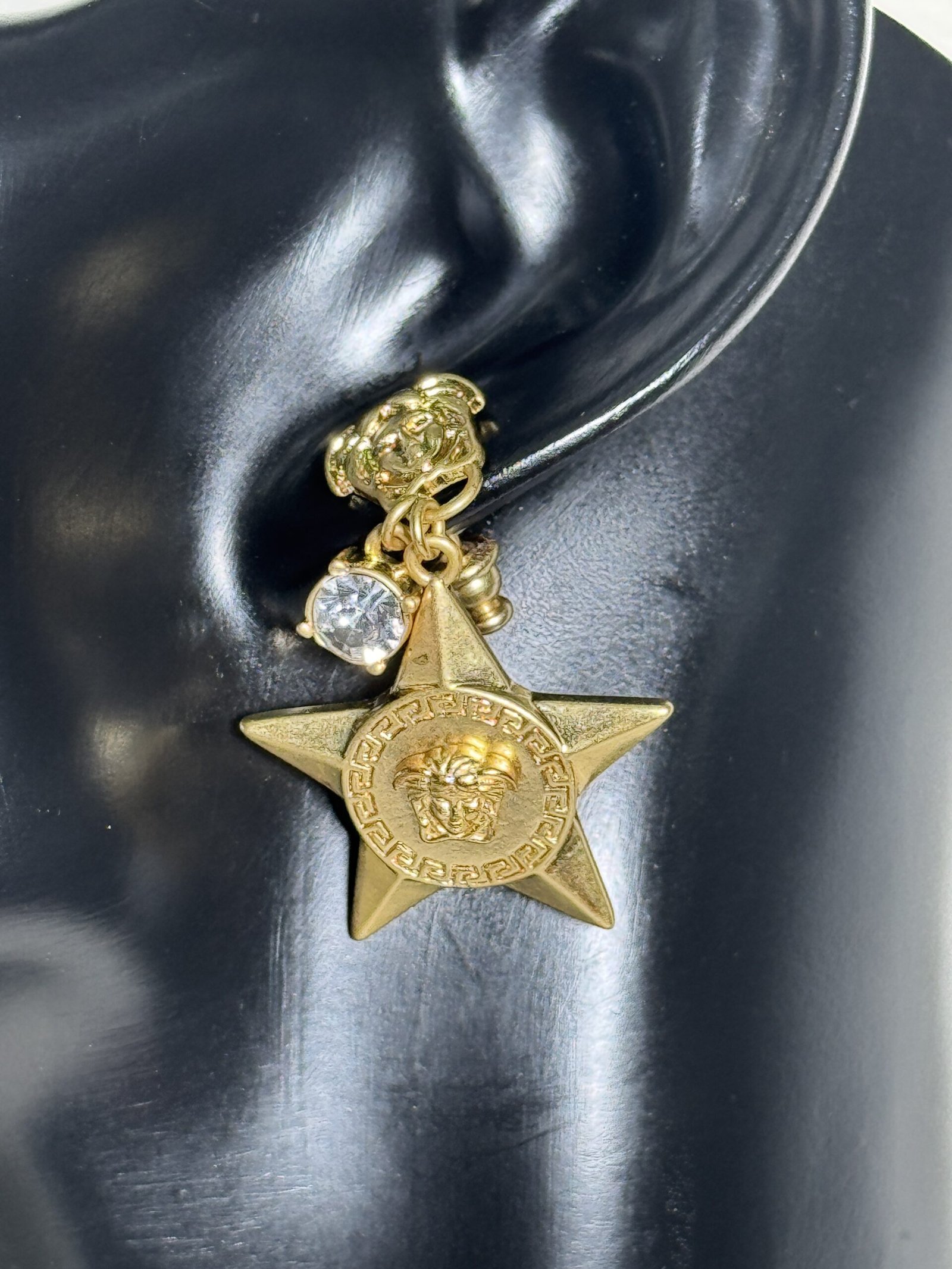 Discover the perfect accent to your ensemble with the Star Versace dropping earrings. These stunning earrings seamlessly blend iconic design elements with contemporary elegance, making them a must-have accessory for discerning fashion enthusiasts. Crafted with meticulous attention to detail, they showcase a bold yet graceful aesthetic that complements outfits ranging from formal to casual.