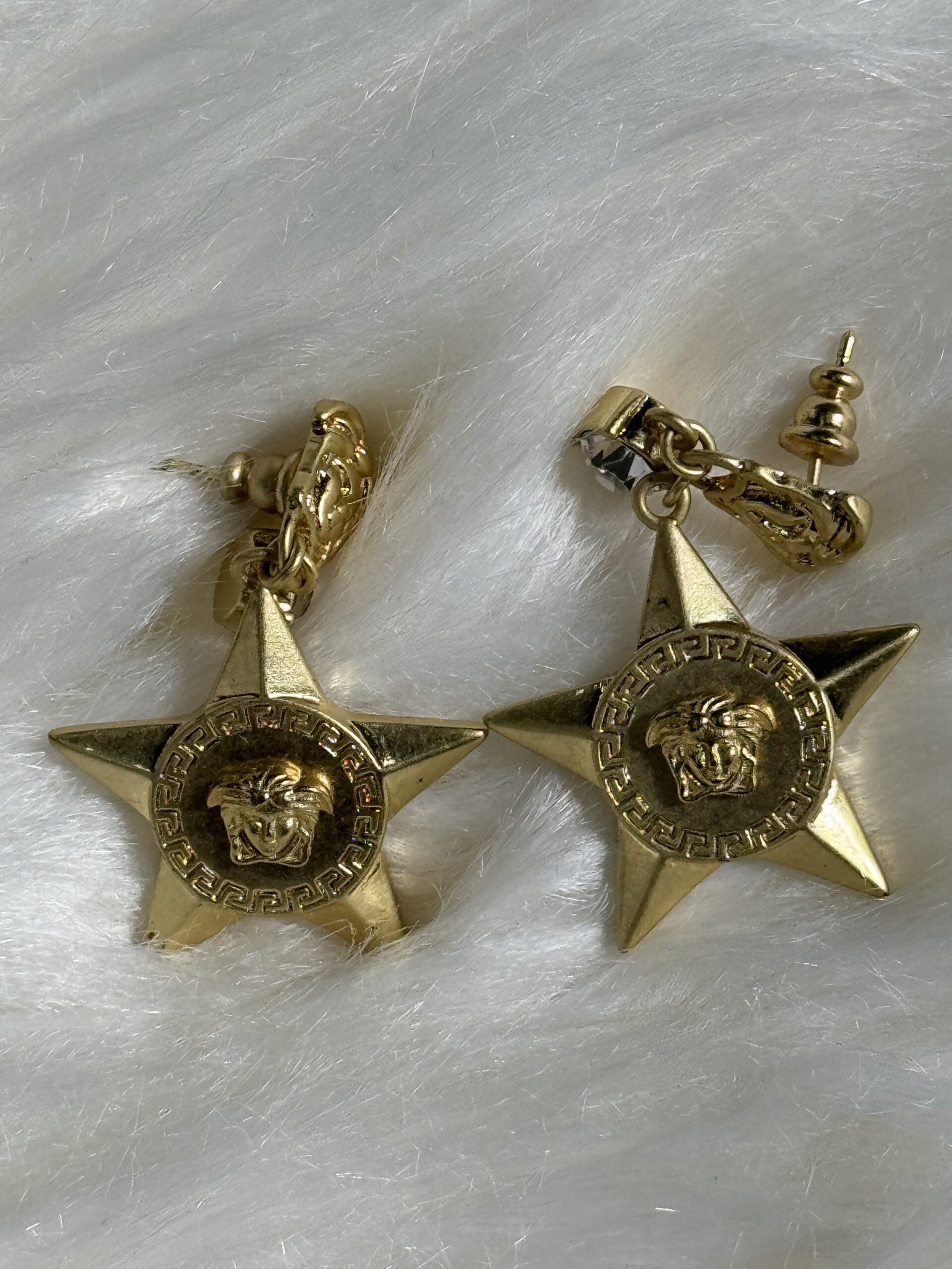 Every pair of Star Versace dropping earrings is crafted from high-quality materials to ensure durability and lasting brilliance. The intricate design features dazzling star-inspired motifs, beautifully finished to enhance their visual appeal. Lightweight and comfortable, these earrings are ideal for extended wear without compromising on style or quality.