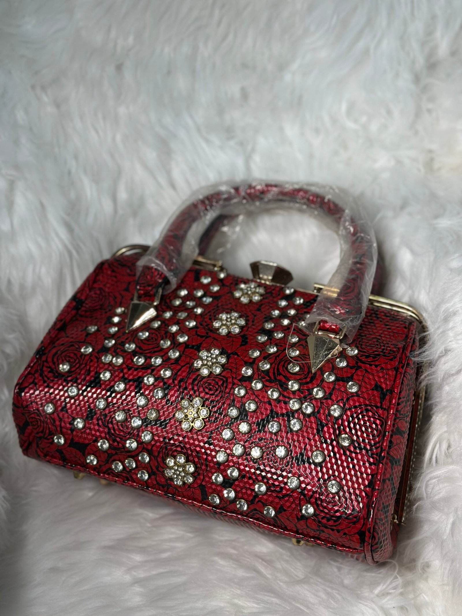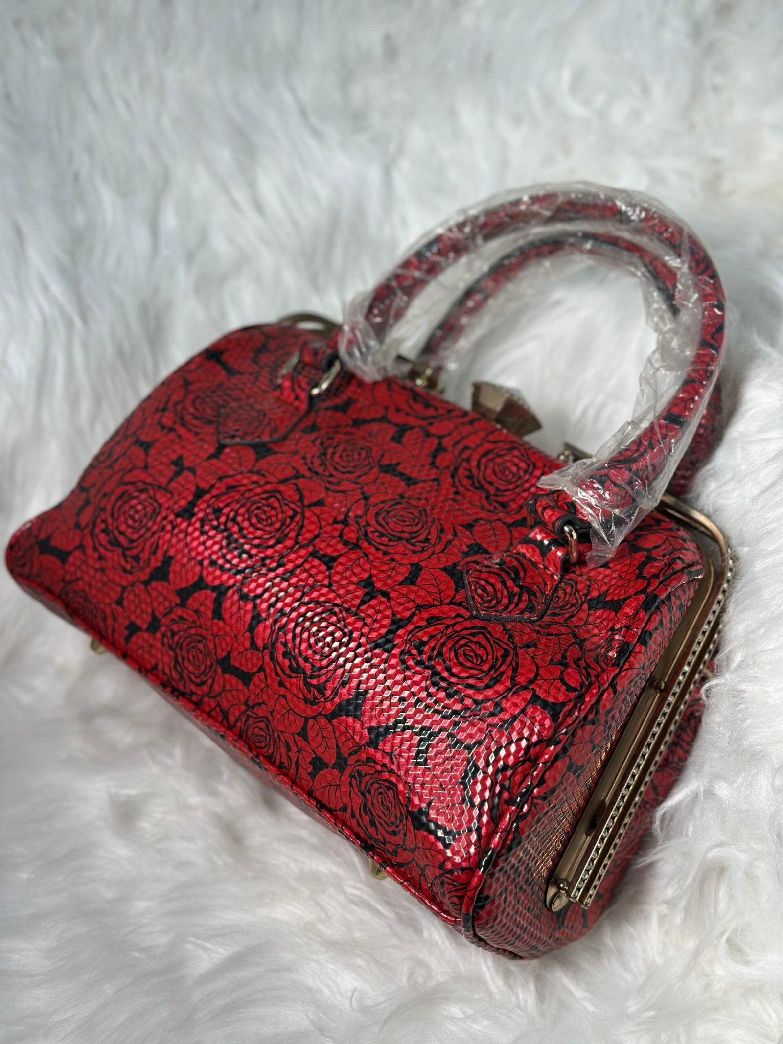 This fashion-forward handy flower red bag is a perfect blend of style and functionality. Its blooming floral pattern, combined with a vibrant red hue, adds a touch of elegance to any outfit. Compact yet spacious, it’s designed to meet the modern woman’s needs effortlessly.