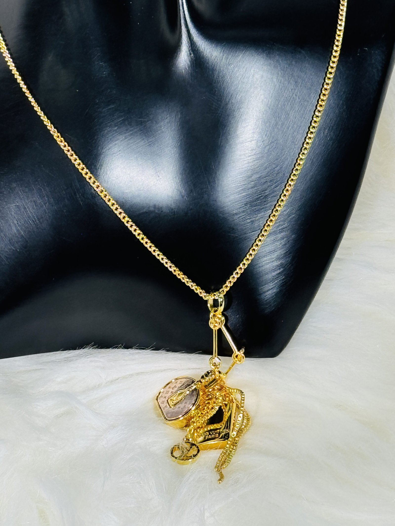 Versatile and exquisite, the Tiny Golden Louis Vuitton Necklace complements a variety of outfits—whether you’re attending formal events or adding a touch of luxury to everyday wear. Its lightweight design ensures comfort, while its captivating details make it the ideal conversation starter. Treat yourself or gift a loved one with this elegant accessory that embodies timeless style and sophistication.