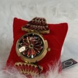 Discover the timeless beauty and futuristic allure of our Triple Timepiece Wristwatch. Crafted with precision, this wristwatch features a striking fin-like golden strap that exudes elegance while ensuring a comfortable fit for daily wear. The bold red stone embellishment adds a touch of luxurious charm, making it a perfect accessory for any attire or occasion.