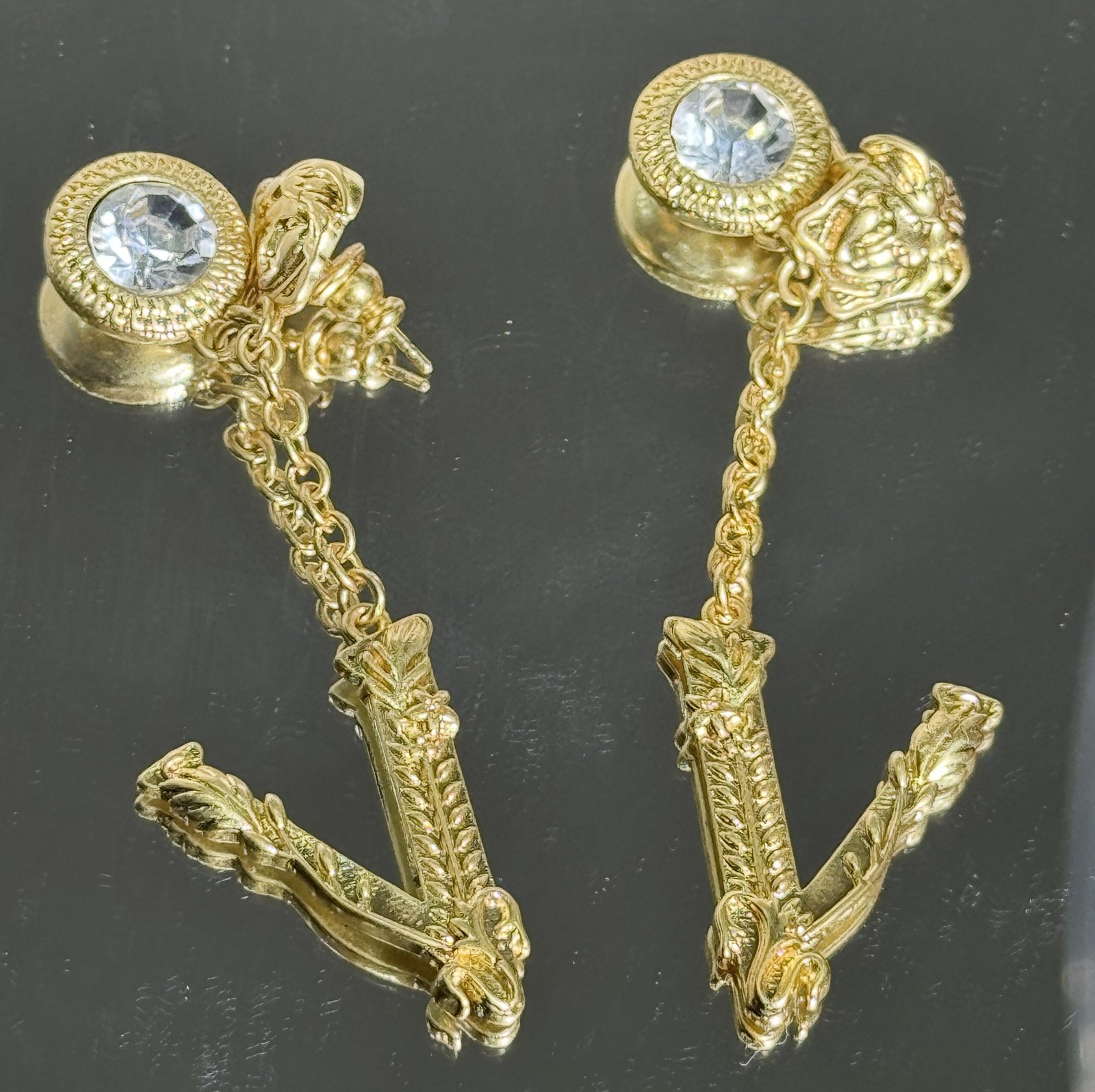 Versace earrings with “V” droppings are a celebration of luxury, modernity, and timeless beauty. Elevate your look and inspire envy among your peers with this must-have statement piece.