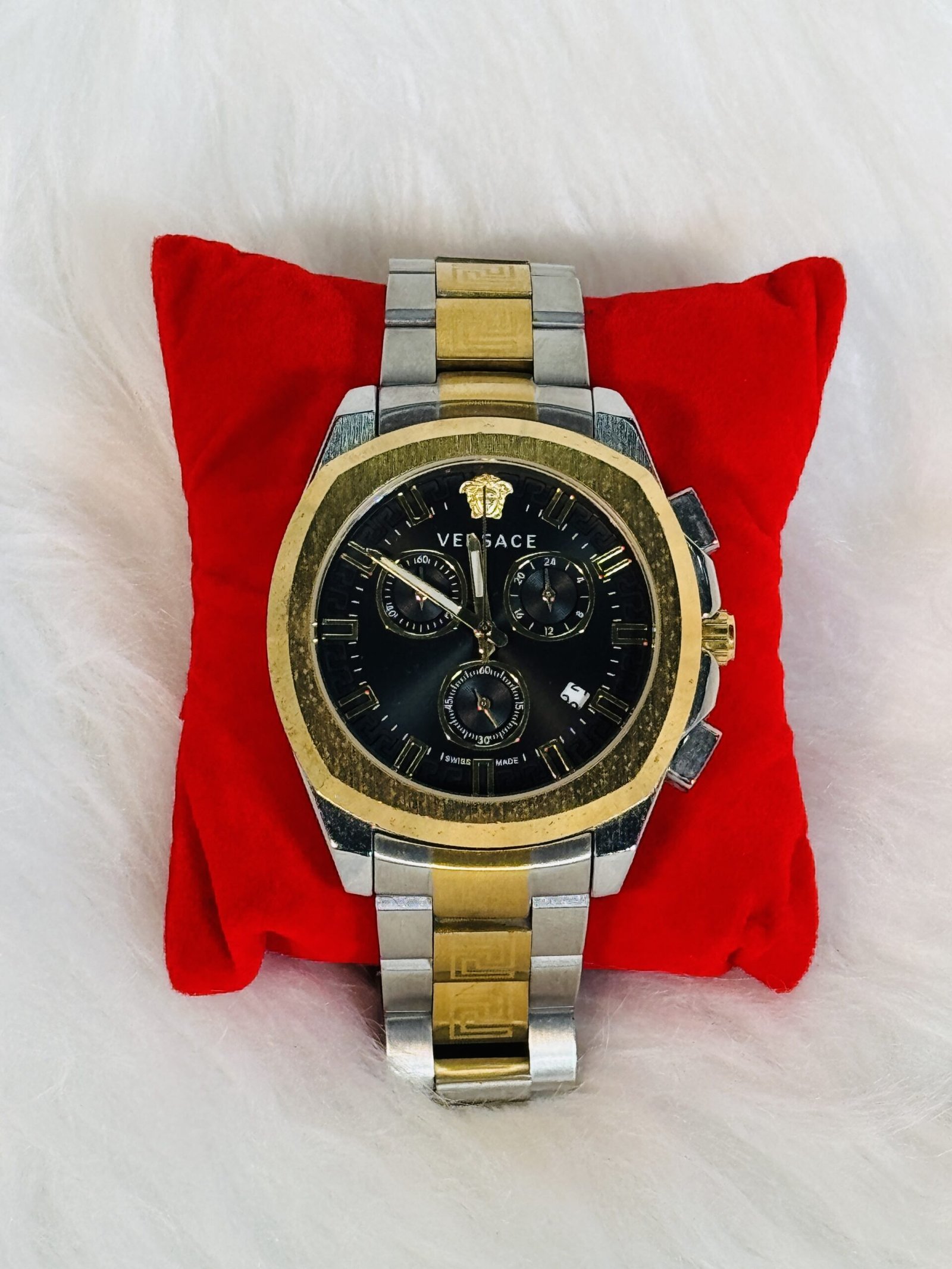 Water-resistant capabilities make the Versace wristwatch a valuable companion for both everyday use and adventure-seekers. Engineered with precision, this timepiece offers reliability under varying conditions, ensuring that neither style nor functionality is compromised. The three functional buttons further enhance usability, offering effortless control over its advanced features. Designed with durability and timeless elegance in mind, this wristwatch is a testament to Versace’s dedication to quality craftsmanship.