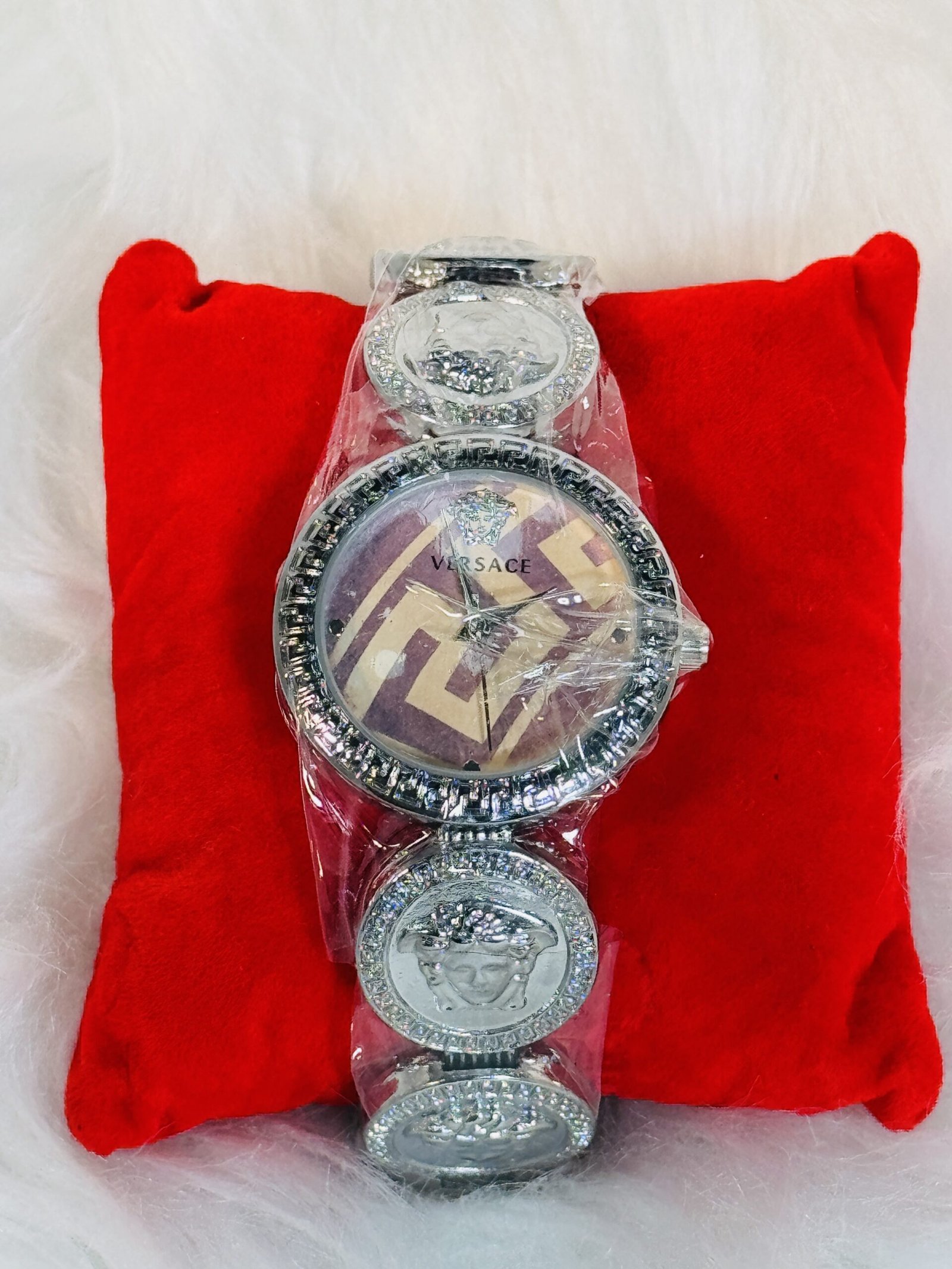 This Versace wristwatch is more than a fashion accessory—it’s built to last. The durable silver strap ensures comfort and resilience, while the engravings emphasize Versace’s signature commitment to artistry and quality. Perfectly balancing elegance with practicality, this watch is designed for individuals who value excellence in their everyday experiences. Make the Versace wristwatch a timeless addition to your collection today.
